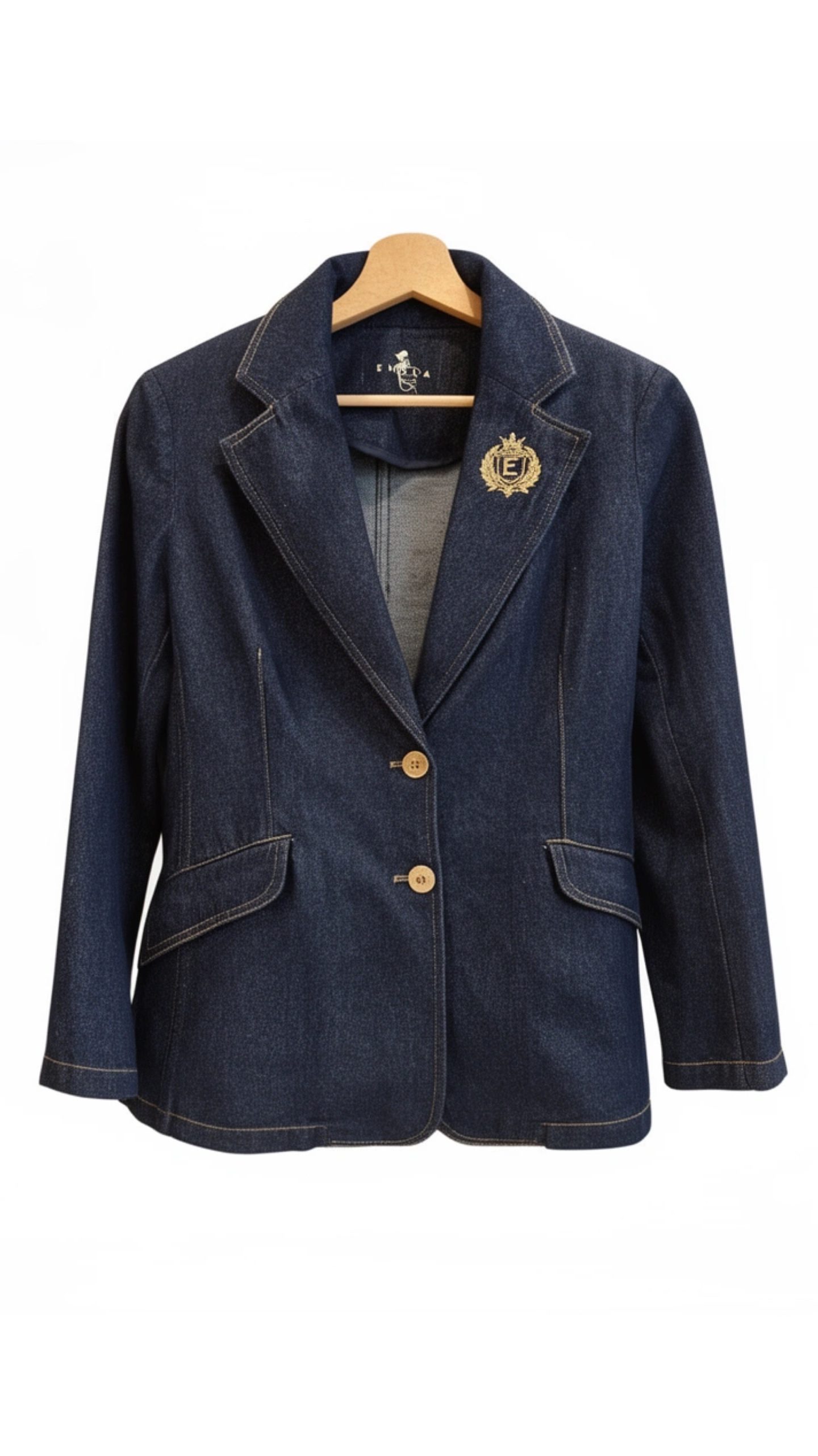 Blazer denim de la marca ENOLA SPIRIT. Modelo diseñado en algodón denim con corte entallado , bolsillos con tapeta y bordado exclusivo de la  marca en la solapa izquierda.