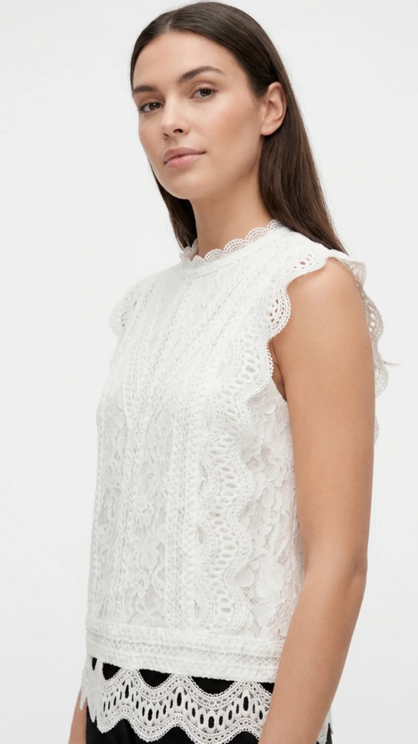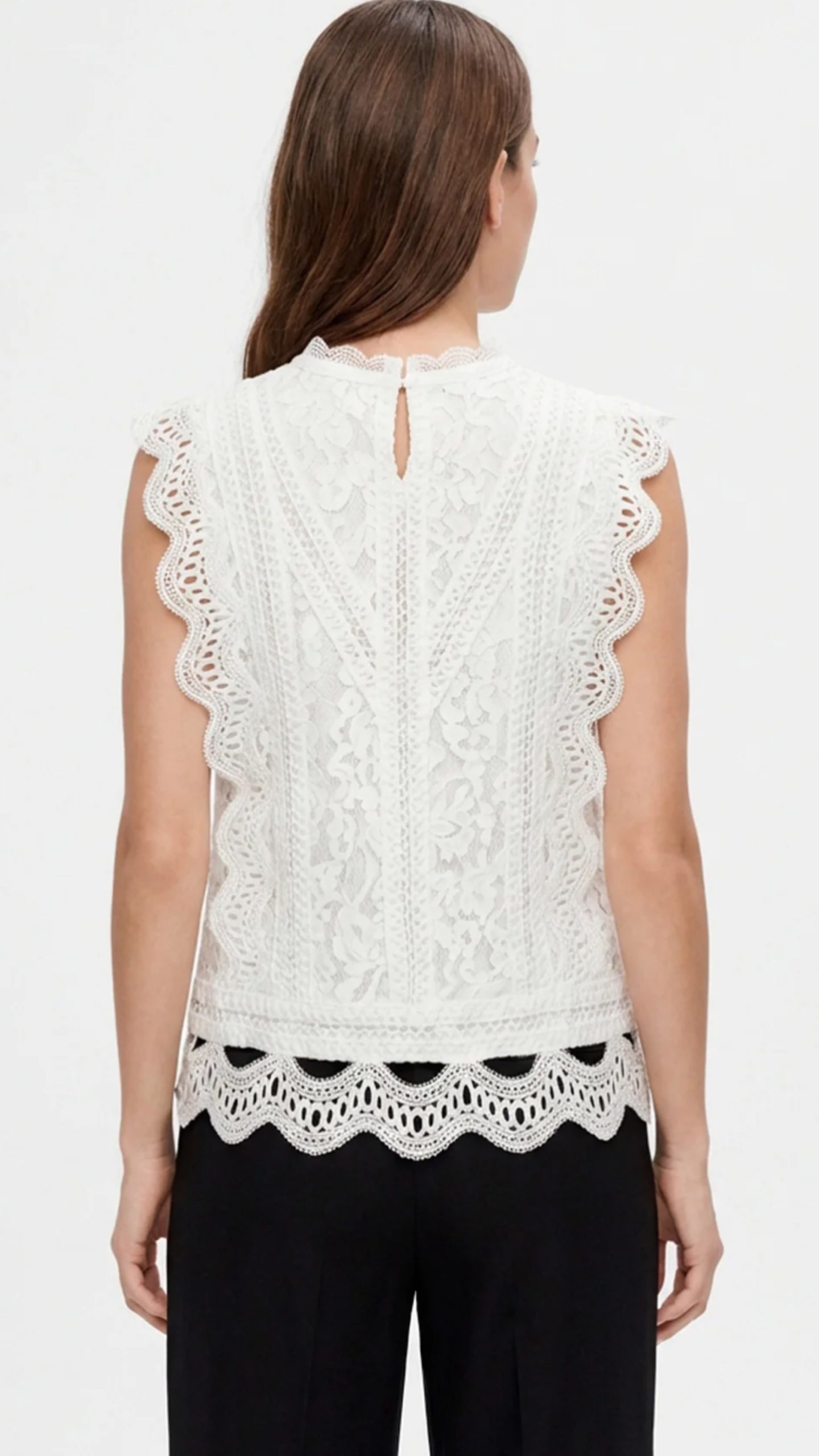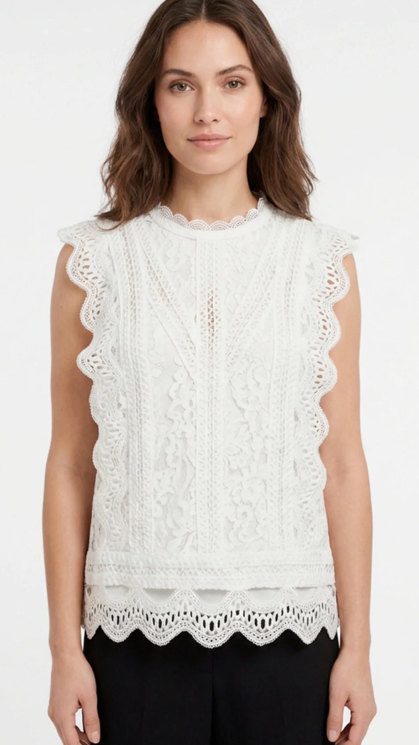 El tejido natural respira perfectamente, mientras que los detalles de encaje añaden un toque refinado y femenino. Prenda esencial para una garde-robe moderna y consciente.