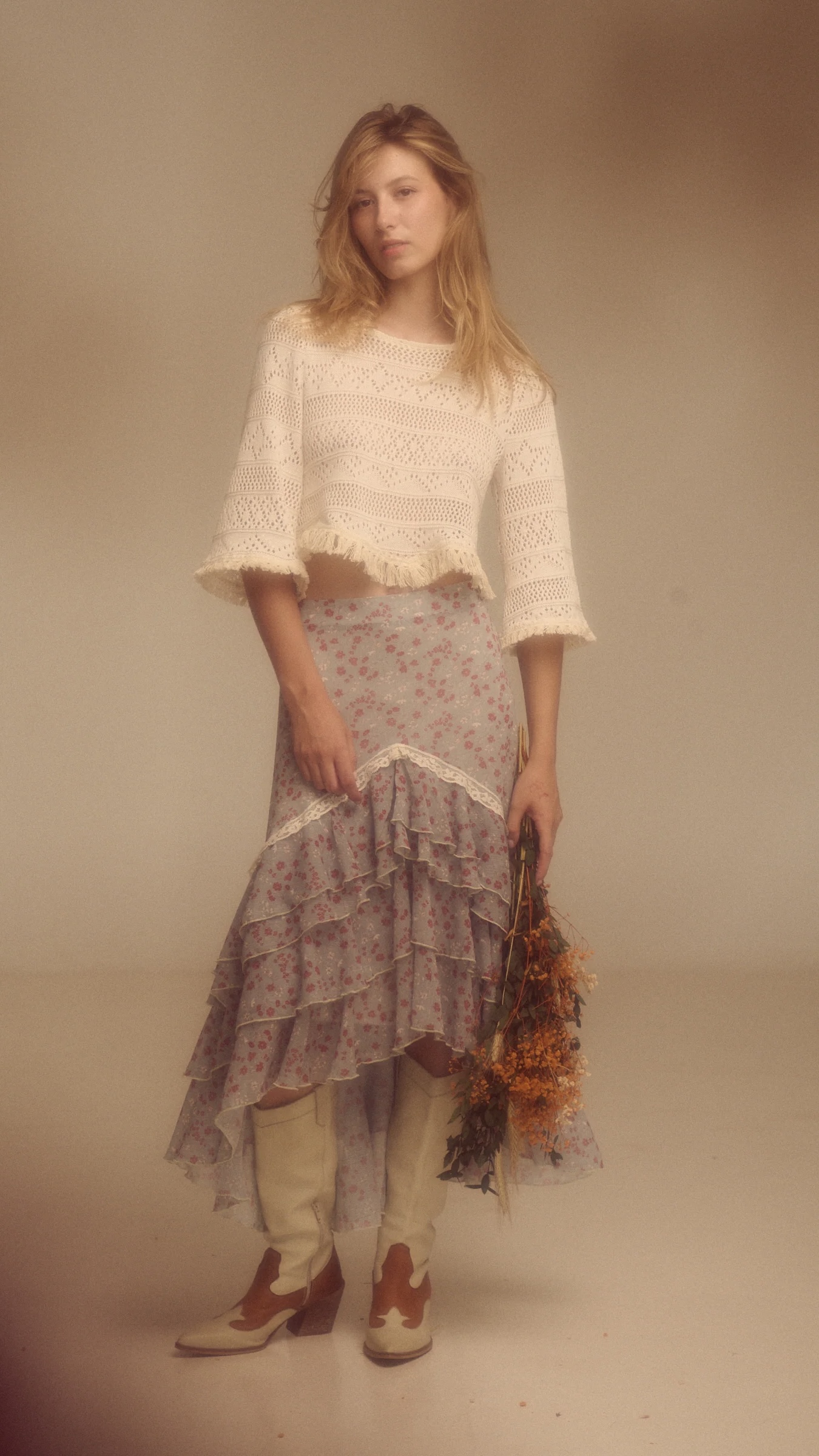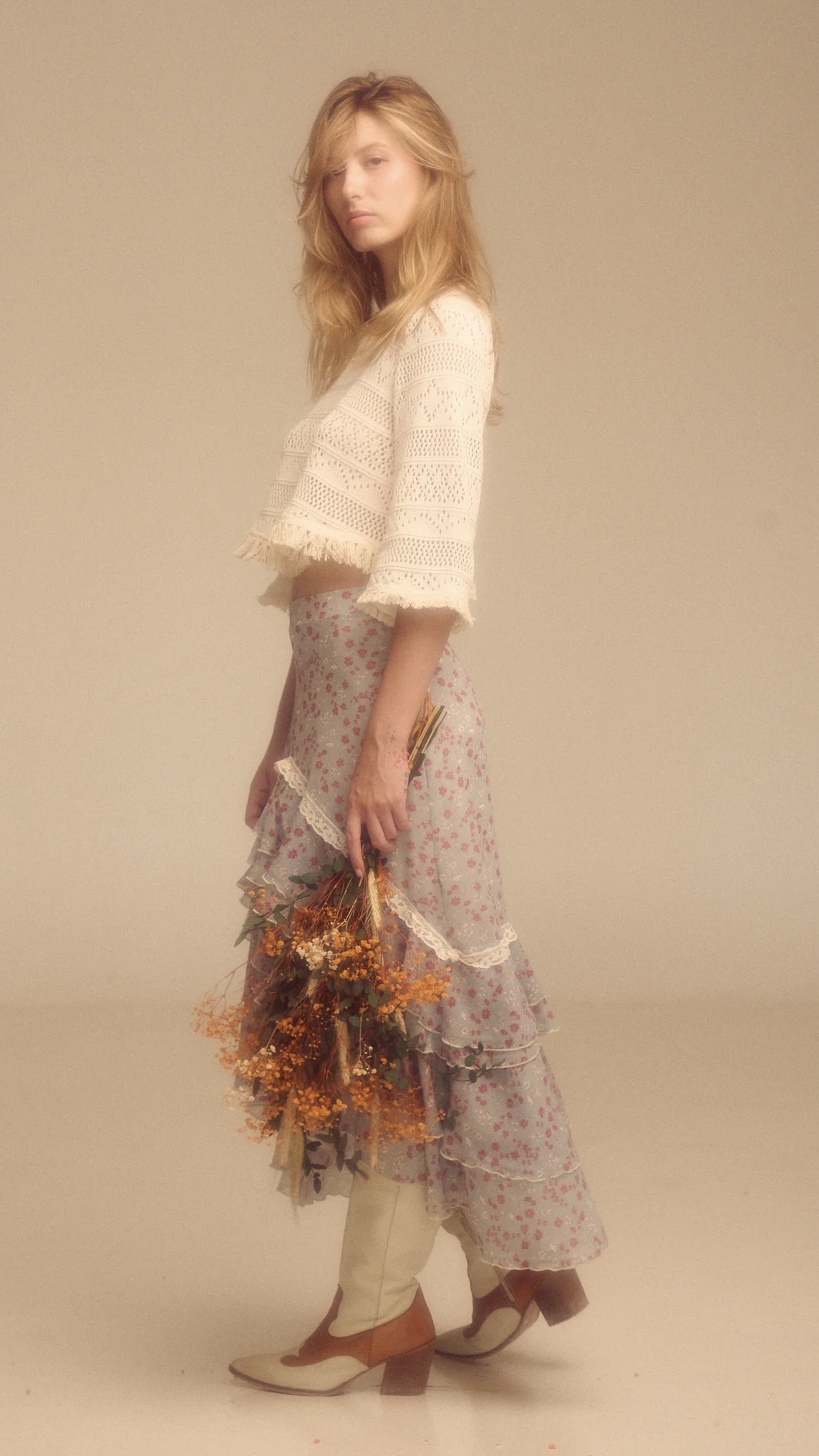 La falda Abril y es una maravilla, confeccionada en georgette estampado en flores, tejido con caída y fluido que aporta movimiento a cada uno de sus volantes, su estilo boho/romántico es tendencia indiscutible esta temporada, en resumen una pieza que esta primavera/verano no puede faltar en tus outfits ❤️.