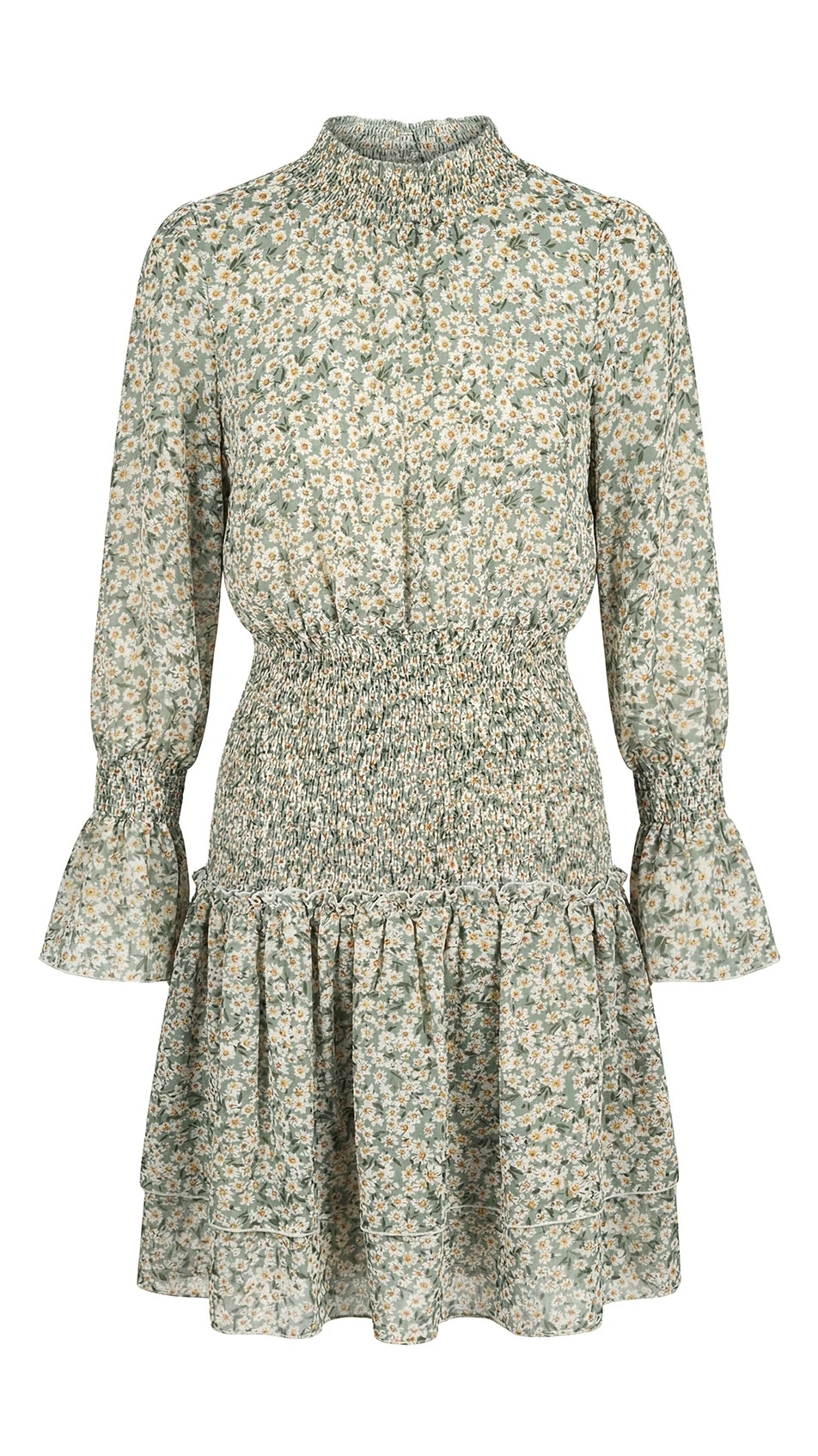 Vestido con estampado floral que combina elegancia y comodidad. La cadera engomada da un toque diferente a la prenda. Confeccionado en poliéster de calidad, ofrece una caída perfecta y facilidad de cuidado.