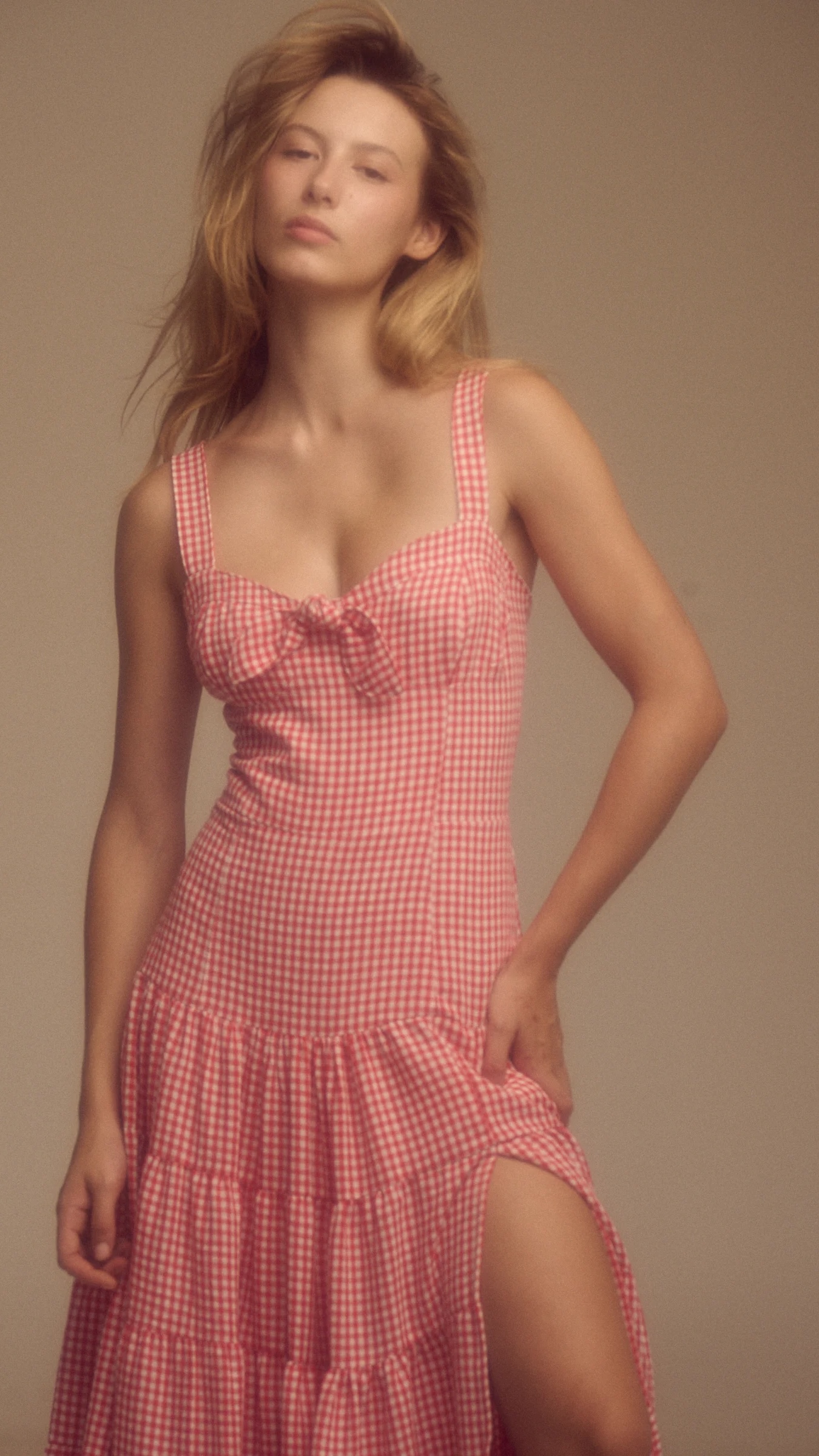 Un vestido que enamorará, con un patrón y confección muy trabajados, es una pieza única, su estructura entalla hasta cadera da paso a una falda de pisos fruncidos, con abertura en el delantero, con espalda semi escotada y cremallera invisible.